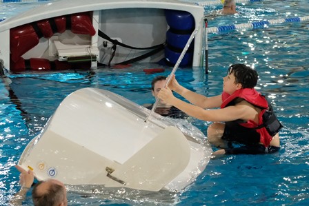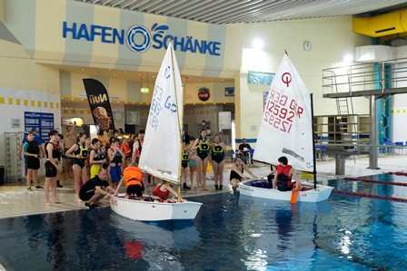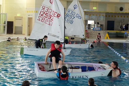 Ziel des Trainings war es, den jungen Seglern die Angst vor dem Kentern zu nehmen und die richtigen Handlungsabläufe bei einem solchen Ereignis zu vermitteln. Bei herrlichen Wassertemperaturen konnten die Kinder auf drei Optimisten das Kentern üben und unter gekenterte Boote tauchen.